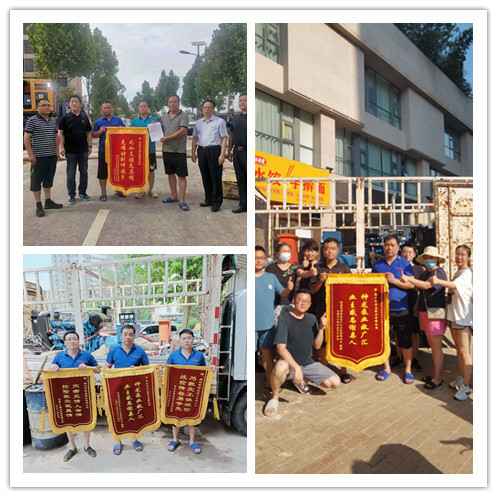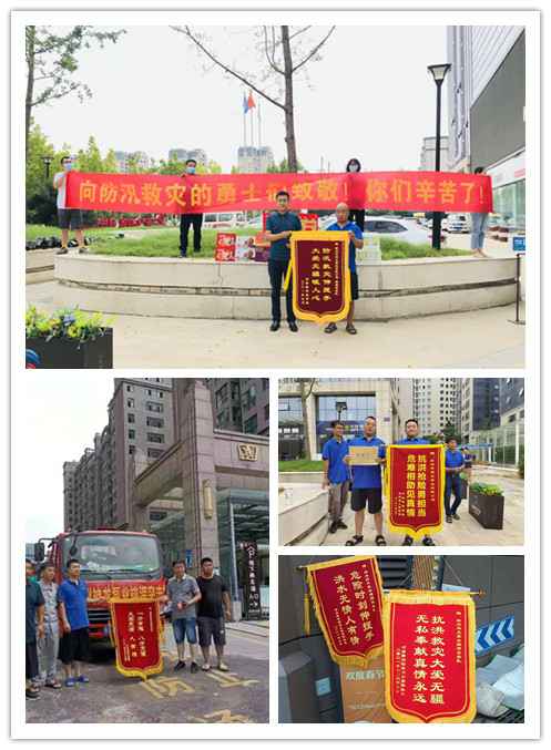 合肥飞扬企业管理体系有限公司自7月21日以来,在郑州各个小区组织地下室排水工作24小时不间断轮班制的深水里进行排水作业,各被救援小区居民争相制作锦旗感谢神龙排涝突击队。
